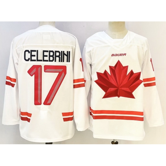 - Men Canada Hockey #17 Macklin Celebrini Red Stitched Jersey