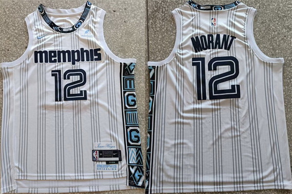 - Grizzlies #12 Ja Morant Light Blue Basketball Swingman Statement Edition Jersey