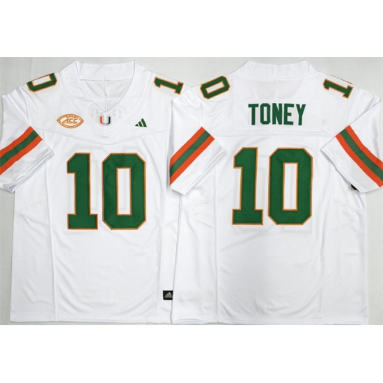 - Men Miami Hurricanes 10 Malachi Toney White F U S E Florida Patch Stitched Football Jersey