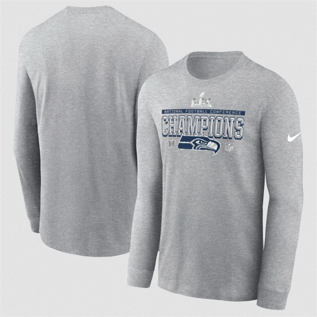 - Men Seattle Seahawks Heather Gray 2025 NFC Champions Locker Room Trophy Collection T Shirt