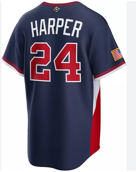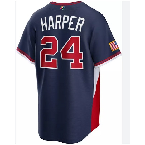 - Men USA Baseball 3 Bryce Harper Navy World Baseball Classic Stitched Jersey