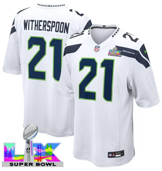 Home>NFL>2025 2026 Super Bowl LX>Seattle Seahawks>Men Women Youth Seattle Seahawks #21 Devon Witherspoon 2025 2026 Super Bowl LX F U S E Stitched NFL Jersey White
