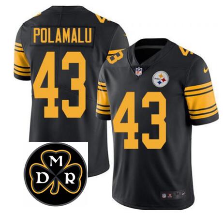 - Men Pittsburgh Steelers 43 Troy Polamalu Black Color Rush Stitched Football Jersey