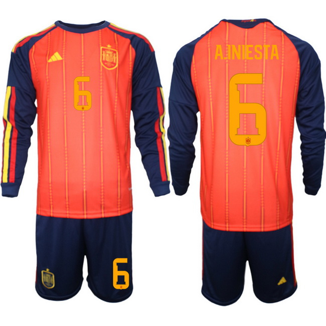 - Men Spain Team Custom 2024 25 Red Home Soccer Jersey Suit