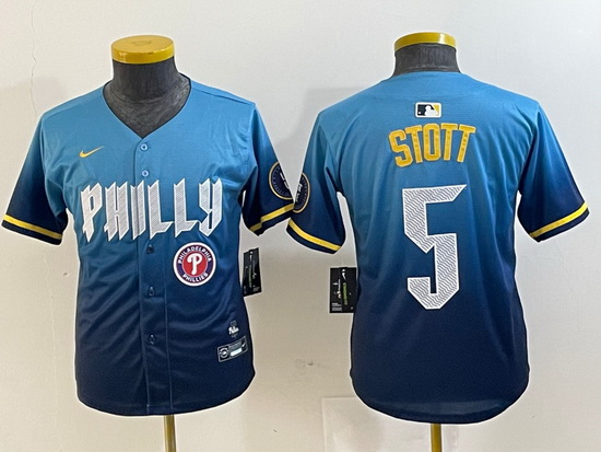 - Youth Philadelphia Phillies 7 Trea Turner Blue Cool Base Stitched Baseball Jersey 1